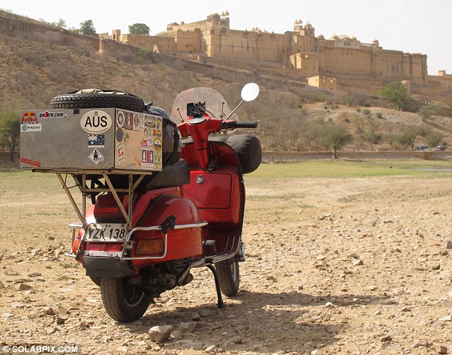 Drew Milne, a software engineer, pictured himself with the motorcycle in a variety of exotic locations - from Iran to India - during the epic adventure, which began in his home town of Adelaide in March 2011.